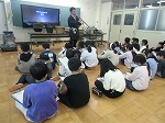 教室から体育館への避難経路を確認しました。「おさない・はしらない・しゃべらない・もどらない」を確認し、安全に素早く非難することが大切であることを再確認しました。体育館では、教頭先生の話を聞き、学習をさらに深めました。