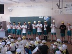 校長先生からは、今月は「自分から気づいて行動しよう」、先生に言われたからではなく、「自分で気づいて、自分でやってみる」ことを大事にしていこうとの話がありました。その後、各委員会紹介とマス作文の発表や高学年の先生から「雨の日の過ごし方」の話がありました。