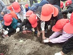 1年生がいもほり体験を行いました。たくさん収穫できるか心配でしたが、つるを切るといもが顔を出していて子どもたちは大喜びでした。サポーターさんの補助で一つひとつ丁寧に掘り出したいもは、1人1個ずつ家に持ち帰りました。残ったいもは、学校で調理して食べる予定です。