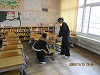 1学期同様、色別縦割り班で決められた場所の掃除を行います。6年生が中心となって各自の分担も決めました。高学年が見本となって掃除をしています。