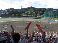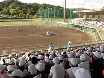 甲賀スタジアムで行われている軟式野球を全校で観戦しました。
