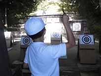 では、昔の暮らしやその道具について話を聞き、手裏剣投げの体験などをしました。