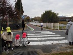 学校から近くの信号機のある場所まで歩きました。お横断歩道では、手を