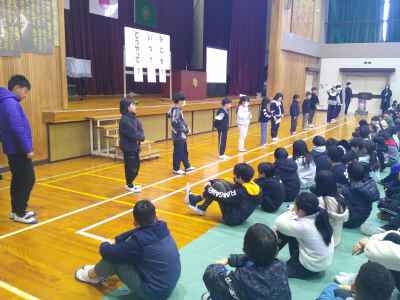 2時間目に全校で、新年の始業式を行いました。校長先生から新年の目標についてのお話しをしていただきました。その後、各学級の代表者が冬休みの思い出と新年の目標を発表しました。