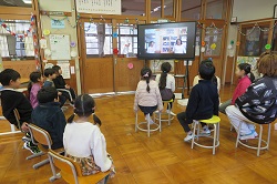 5月19日(月) 1年朝宮小とのオンライン授業 今年度初のオンライン授業は1年生。保育園でいっしょだったという朝宮小の友だちと、それぞれの学校のこと、先生のことなどについて質問をし合いました。きちんと「です」「ます」で話しながらも、ずっと笑顔でとても楽しそうな3人でした。最後に記念写真をパチリ。離れているはずなのに、いっしょにいるかのように写ることが不思議な1年生でした。次回は○×クイズをしようと、計画を立てています。 5月14日(水) 学校巡回公演 びわ湖ホール声楽アンサンブル学校巡回公演がありました。20名ほどの方が来てくださり、体育館中に響き渡る声で、たくさんの歌を聞かせていただきました。美しい歌声、素敵な衣装に、子どもたちはちょっぴり緊張気味。でも、終わってから「あの歌がよかった」「あの曲が好き」とたくさん話をしていました。保護者の方や地域の方にも楽しんでいただけて嬉しいです。ご来校いただき、ありがとうございました。 5月13日(火) 地域の方との交流 1年生が、百歳体操にお邪魔していっしょに体操をしたり、コミュニティセンターの方に館内を案内していただいたりしました。また、3年生が、総合的な学習の時間の「多羅尾グルメプロジェクト」でインタビューをさせていただきました。直接触れ合い、貴重なお話がたくさん聞けて、素敵な時間となりました。ありがとうございました。