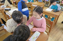 来年度の新入生・転入生6名が来てくれました。この日の出会いを楽しみに準備をしてきた子どもたち。お互いに自己紹介をした後、3年生企画の「転がしドッチ」、1,2年生企画の「学校紹介」、5年生企画の「宝探し工作」などで楽しんでもらいました。最後には、一人ずつにメッセージカードを渡して、笑顔でお見送り。「楽しくできた。」「かわいかった。」と、プラスの感想が絶えませんでした。4月が楽しみです。