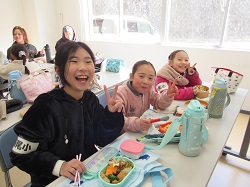 小原小学校で、今年度最後の3校集合学習を行いました。体育や音楽をいっしょに楽しんだ後、給食もいっしょに食べて、昼休みまで過ごしました。すっかり仲よくなり、「また来年~!」とハイタッチをしてお別れ。終始、笑顔いっぱいの子どもたちでした。