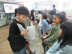 市の公共交通課から講師を迎え、電車の乗り方や切符の買い方について学習しました。