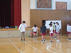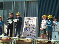 4年生が全校のみんなに呼びかけ、昼休みに劇の発表をしました。