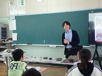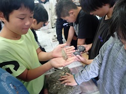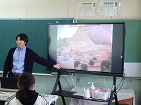 地域の方がゲストティチャーとして、実物や写真から、地層や化石について詳しく教えてくださいました。