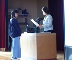1年生は6年生に、2年生は1年生に、この一年間のがんばりや成長を発表しました。