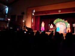 びわ湖ホール声楽アンサンブルのみなさんに来ていただき、オペラ「泣いた赤おに」を鑑賞しました。生の歌声や演奏は、迫力満点でした!