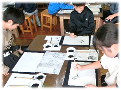MIHOミュージアムより講師を迎え、「鳥獣戯画」について、鑑賞や視写体験をとおして学びを深めました。